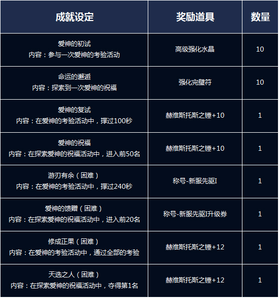 3月16日至4月6日期间,玩家在每周三、五、七可参与活动“爱神的考验”,每周一、六可参加活动“爱神的祝福”,完成即可获得丰厚奖励 。