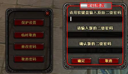 步骤五 临时取消:在设置菜单中点击【临时取消】按钮,会弹出安全密码输入界面,输入安全密码后点击【确定】按钮,临时取消安全保护。账号重新登录后,保护自动恢复。