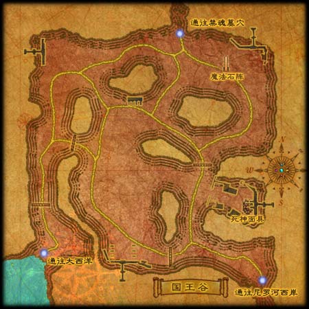 适合等级 50-60级 进入限制 无 PK保护 无 地图传送 尼罗河西岸、大西洋、禁魂墓穴