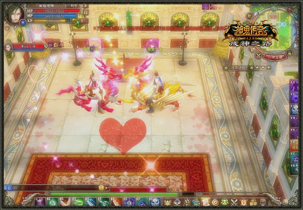 当你的翅膀,带你飞翔莫提尼亚,拥有你的日子,快乐、微笑、幸福一起在飘荡。回想一起走过的亚特兰蒂斯广场,广场两旁的路灯洒在只有两个互拥黑影上,如此唯美浪漫的情景,游戏也好,现实也罢,来自电信2区 伊甸园的《神鬼传奇》玩家,“黑暗咆啸”和“Miss丫头”的动人爱情从现实延续至游戏。