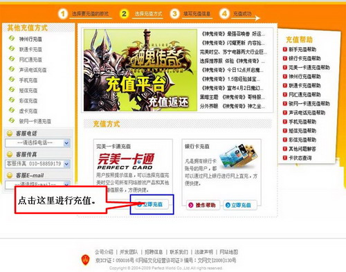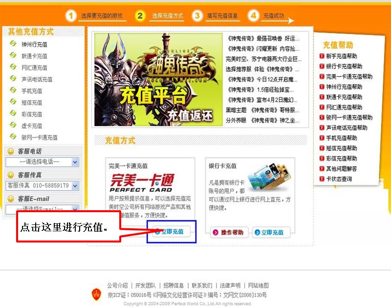 步骤二:以下是账号充值页面。(我们仅列出使用完美一卡通实卡进行充值的步骤,其他充值方请参看页面中的帮助系统。)