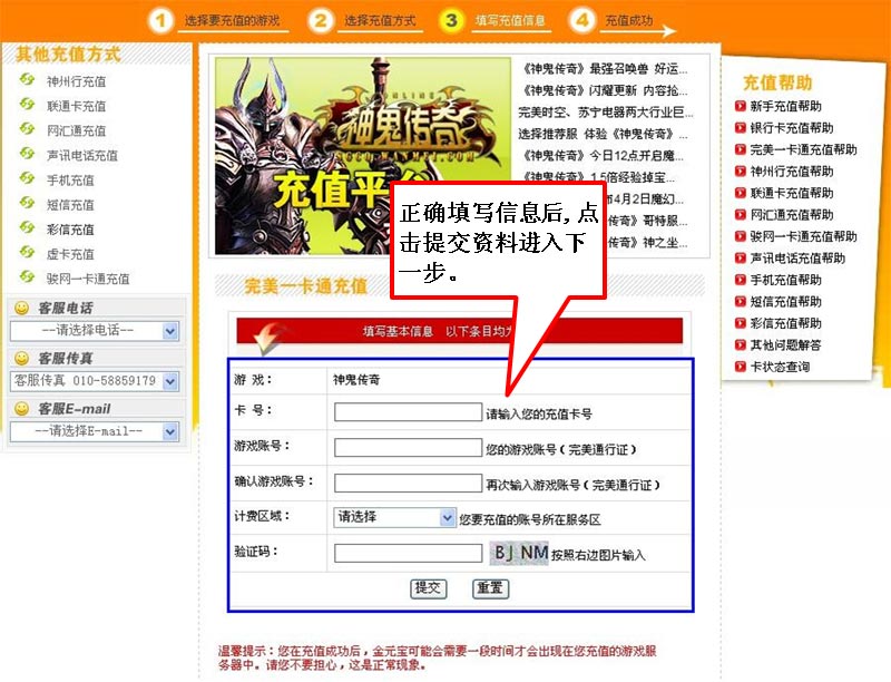 步骤三:下图为录入充值信息的页面,请按页面中的提示正确填写相关信息。