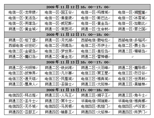 2009年11月12日 第一阶段16:00—17:00;第二阶段17:00—18:00