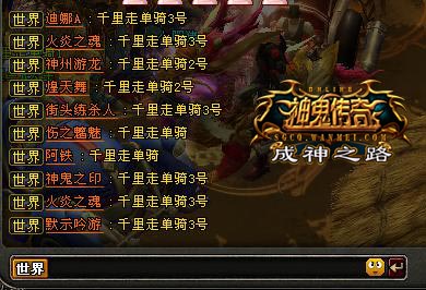 5、参与幸运号码抽奖的玩家,必须在世界里面喊话,格式必须按:千里走单骑X号;