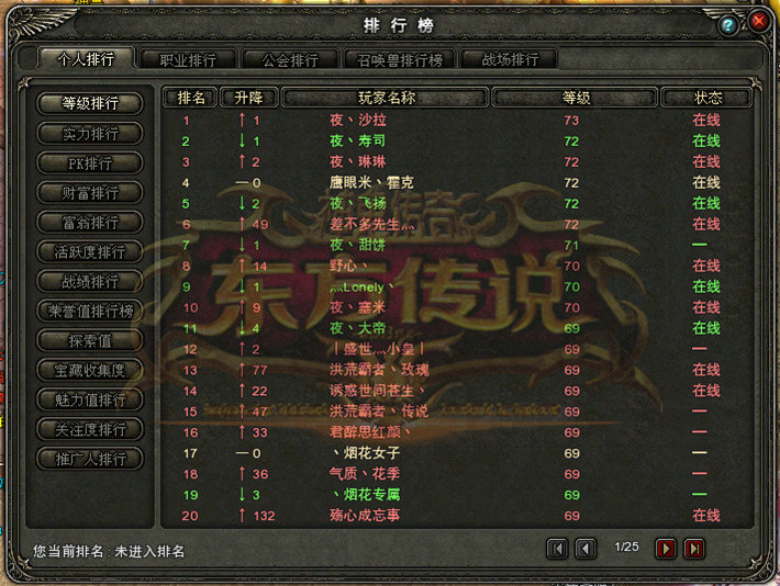 下面就让我们看看《神鬼传奇》“东方传说”公测新服中等级排行榜的争夺情况吧!