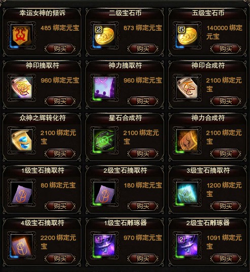 绑定元宝 换取精品道具