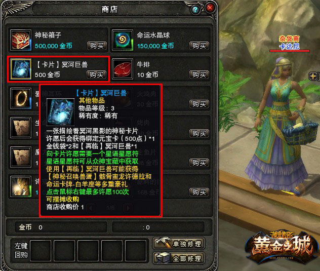图1 杂货商人购买【卡片】冥河巨兽