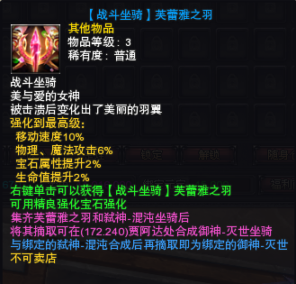 相比于【战斗坐骑】弑神混沌,拥有更强的属性与恢复能力,同时可以解除自身所中的“厄运”、“追魂”状态。
